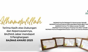 Mediaxpresi.com| Badan Amil Zakat Nasional (BAZNAS) RI menganugerahkan BAZNAS Kabupaten Ciamis sebagai Kabupaten Zakat atas keberhasilannya membangun sistem pengelolaan zakat berbasis desa yang solid, inovatif, dan berdampak langsung bagi masyarakat.