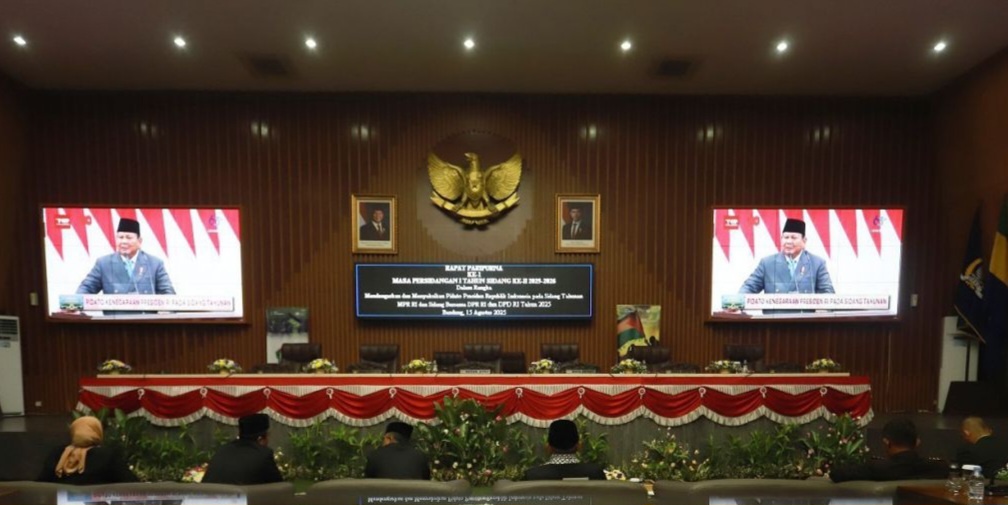 Mediaxpresi.com|BANDUNG – DPRD Kota Bandung menggelar Rapat Paripurna dengan agenda mendengarkan pidato Kenegaraan berkenaan dengan Penyampaian Keterangan Pemerintah atas RUU tentang APBN Tahun Anggaran 2026 beserta Nota Keuangannya menjelang HUT Ke-80 Republik Indonesia, di Ruang Rapat Paripurna, Jumat, 15 Agustus 2025.